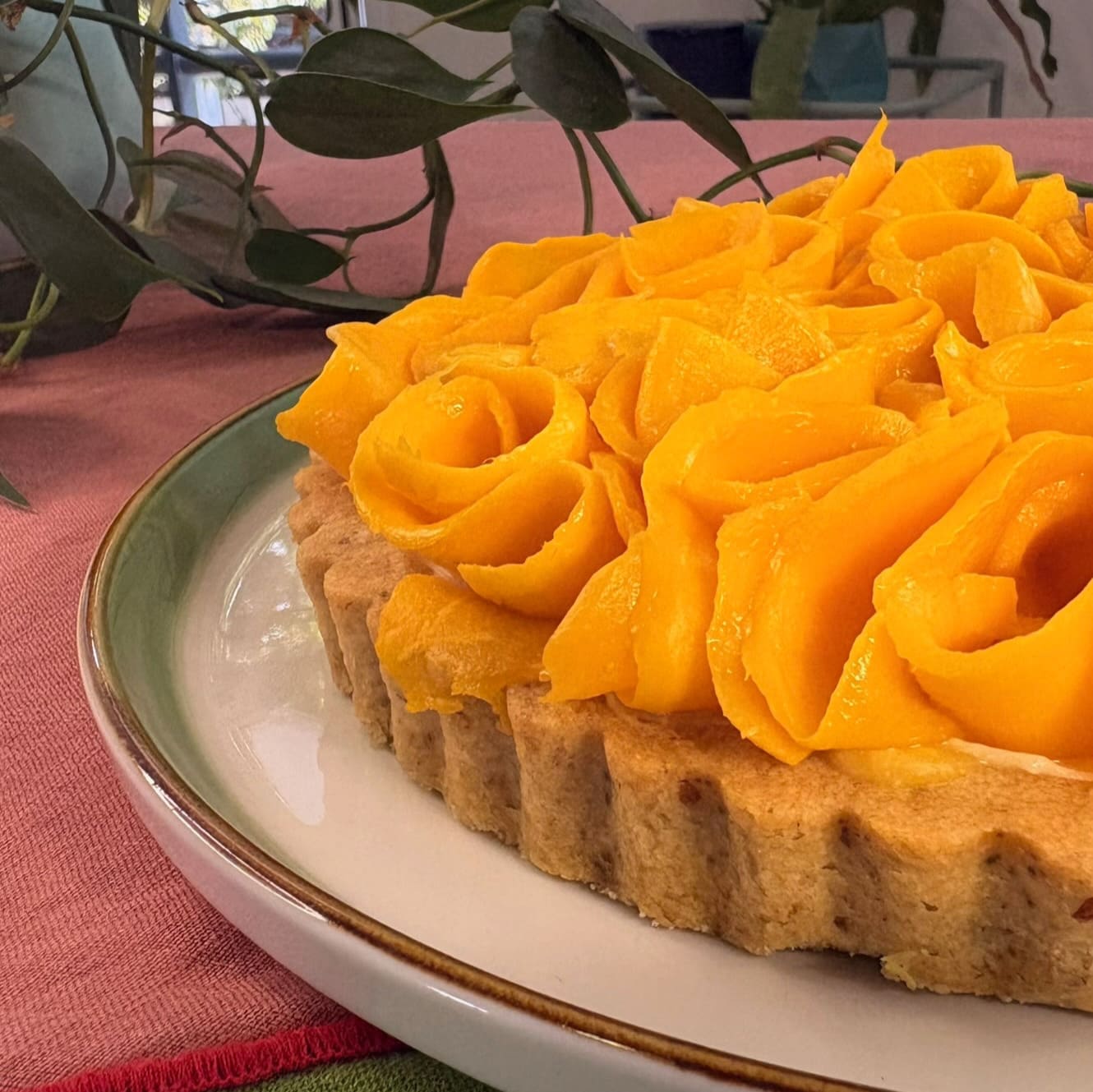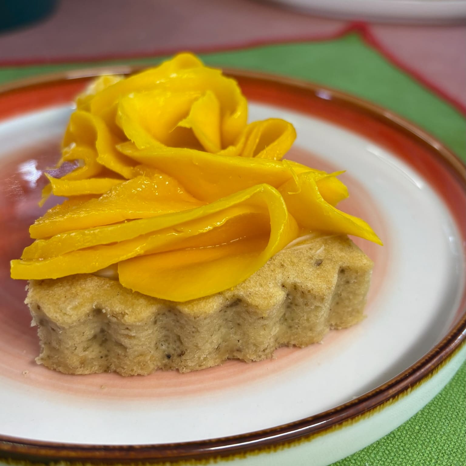 Deliciosa tarta de mango que está disponible solo por temporada.