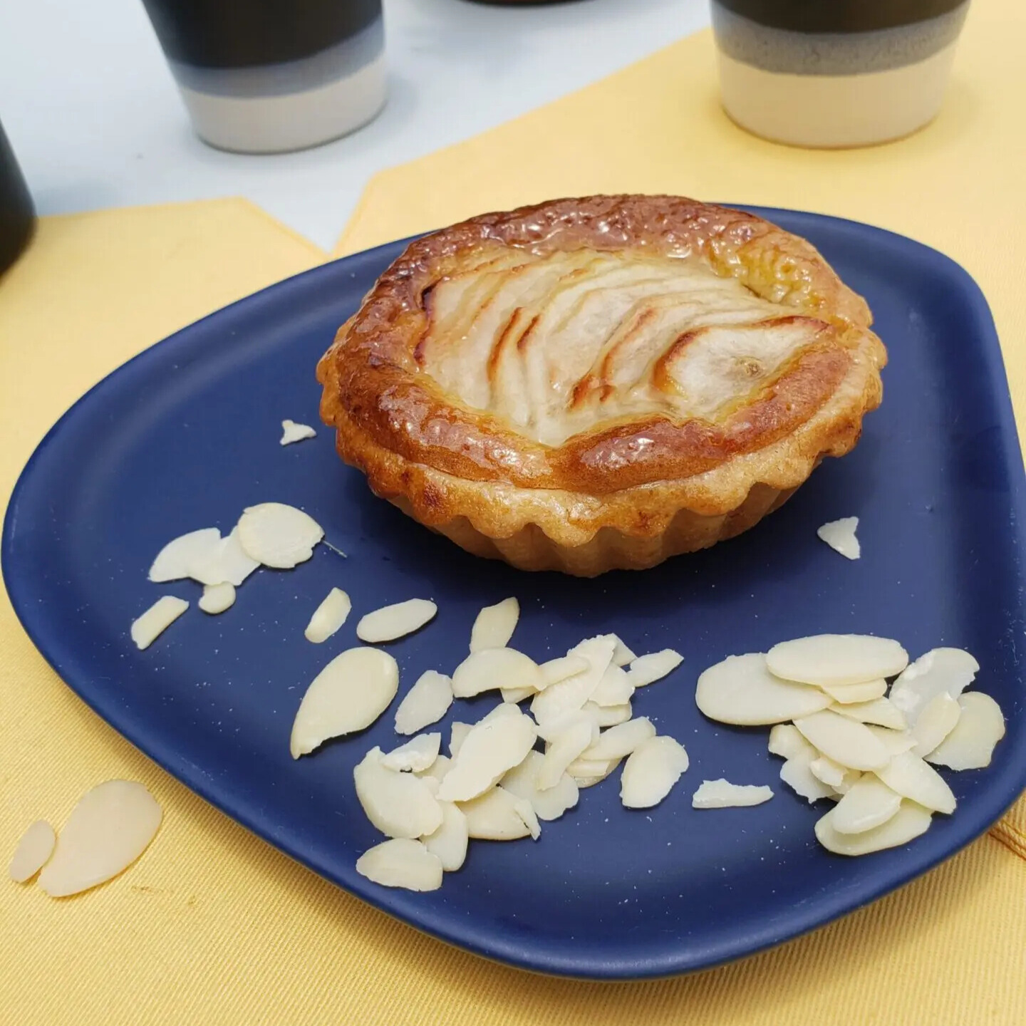 Deliciosa galleta de nuez, relleno de crema de almendra con pera.
