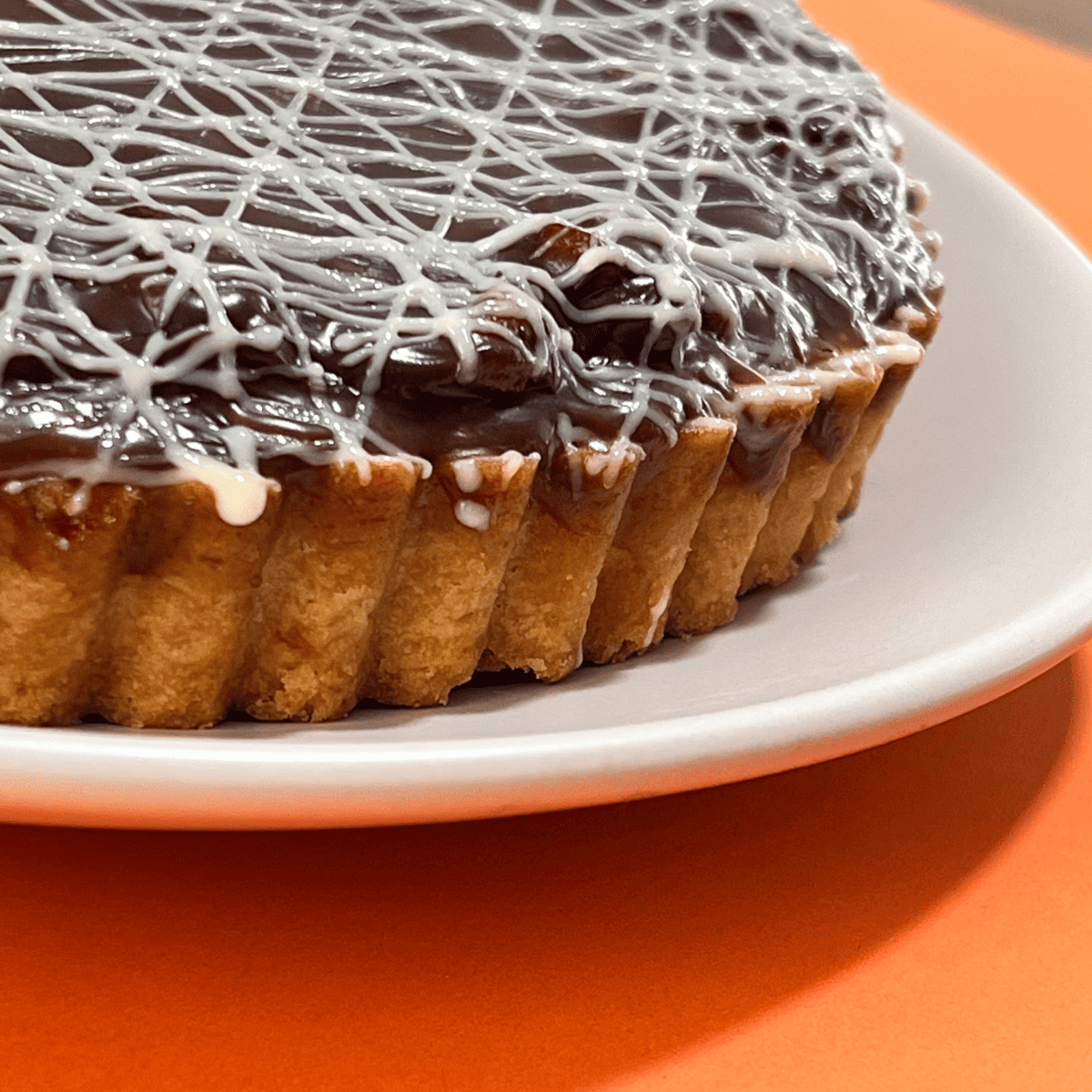 Deliciosa galleta rellena de caramelo con nuez, cubierta de chocolate.
